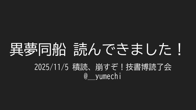 2025/11/05(水) 開催 積読、崩すぞ!技書博読了会 https://yumenosora.connpass.com/event/366468/ #gishohaku12_after