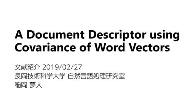 A Document Descriptor using Covariance of Word Vectors 文献紹介 2019/02/27
