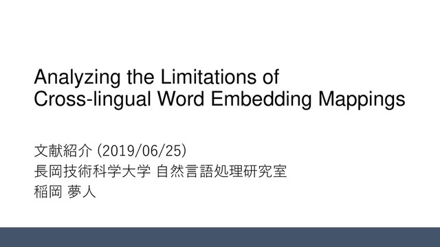 Analyzing the Limitations of Cross-lingual Word Embedding Mappings 文献紹介 (2019/06/25)