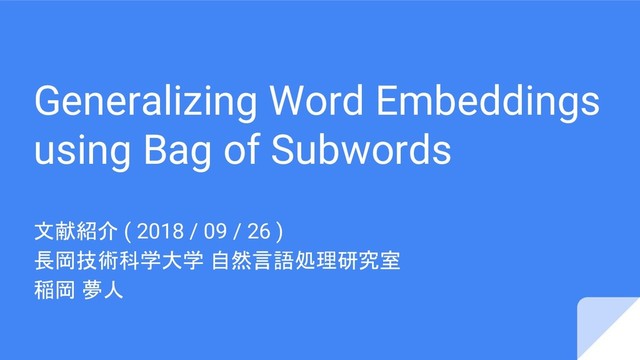 Generalizing Word Embeddings using Bag of Subwords 文献紹介 ( 2018