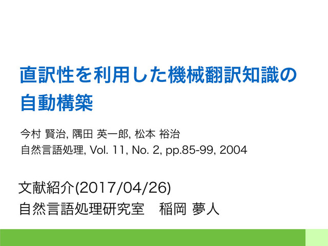 文献紹介: 直訳性を利用した機械翻訳知識の自動構築