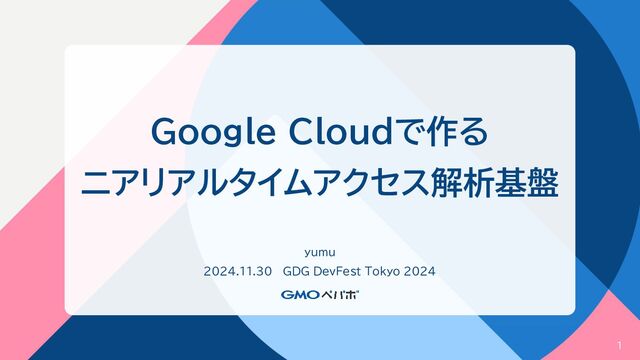 Google Cloudで作る ニアリアルタイムアクセス解析基盤 yumu 2024.11.30 GDG DevFest Tokyo 2024 1
