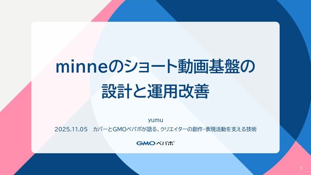 minneのショート動画基盤の 設計と運用改善 yumu 2025.11.05 カバーとGMOペパボが語る、クリエイターの創作・表現活動を支える技術 1