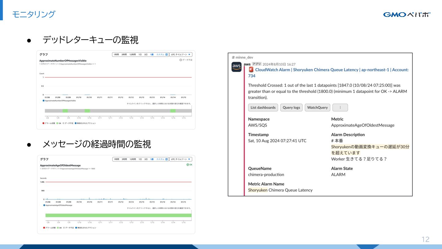 12 モニタリング • デッドレターキューの監視 • メッセージの経過時間の監視