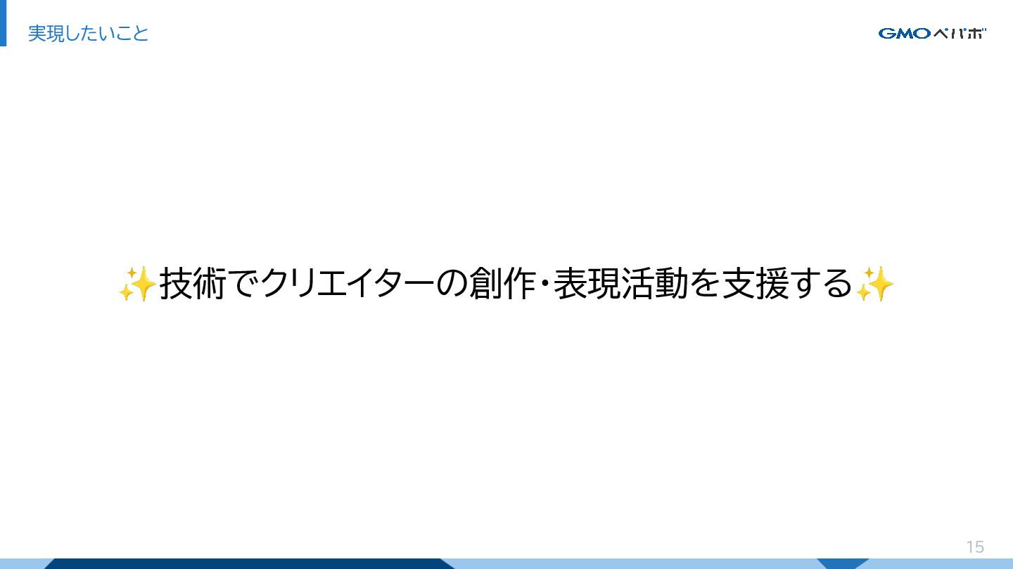 15 実現したいこと ✨技術でクリエイターの創作・表現活動を支援する✨