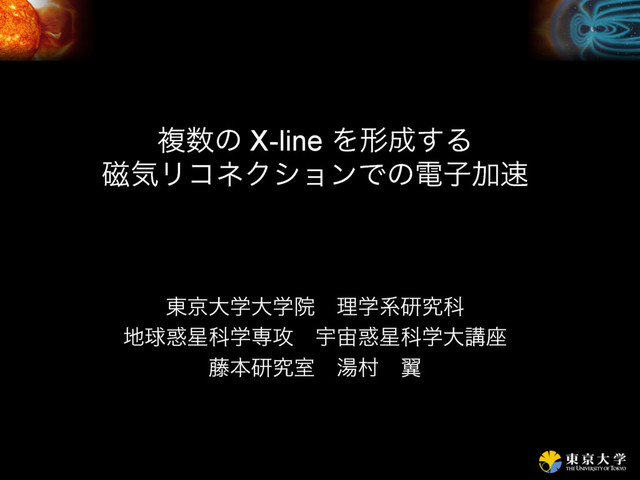 X-line Λܗ͢Δ࣓ؾϦίωΫ γϣϯͰͷిࢠՃϝΧχζϜΛղ໌͢Δ • ٿ࣓ؾݍඌ෦ଠཅ෩தͰ؍ଌ͞ΕΔ • X-line ؒͷด࣓ͨ͡ྗઢɿ࣓ؾౡ – ؍ଌɿ࣓ؾౡͱߴΤωϧΪʔిࢠ [Chen et al., 2007] – ࣓ؾౡ߹ମ͢Δ [Finn and Kaw, 1977] – γϛϡϨʔγϣϯɿ࣓ؾౡ߹ମͱిࢠՃ [Saito and Sakai, 2006] ࣓ؾౡ X-line
