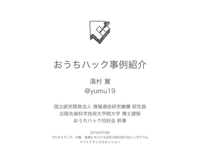 2016年7月6日(水)-8日(金)に鳥羽シーサイドホテルで開催されたDICOMO2016のナイトテクニカルセッション発表資料