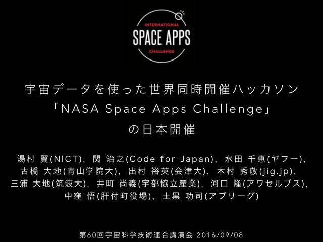 ք ಉ ࣌ ։ ࠵ ϋο Χ ι ϯ ʮ N A S A S p a c e A p p s C h a l l e n g e ʯ ͷ ຊ ։ ࠵ ౬ ଜ ཌྷ / * $ 5 ɼ ؔ ࣏ ೭ $ P E F G P S + B Q B O ɼ ਫ ా ઍ ዳ Ϡ ϑ ʔ ݹ ڮ େ ੨ ࢁ ֶ Ӄ େ ɼ ग़ ଜ ༟ ӳ ձ େ ɼ ଜ ल ܟ K J H K Q ɼ ࡾӜ େ ஜେ ɼҪொ ঘٛ Ӊ෦ڠཱ࢈ۀ ɼՏޱ ོ Ξϫηϧϒε ɼ த ۼ ޛ ؊ ொ ɼ ࠇ ޭ ࢘ Ξ ϓ Ϧ ʔ ά ୈ 6 0 ճ Ӊ Պ ֶ ٕ ज़ ࿈ ߹ ߨ ԋ ձ 2 0 1 6 / 0 9 / 0 8