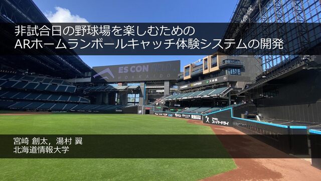 非試合日の野球場を楽しむための ARホームランボールキャッチ体験システムの開発 宮崎 創太,湯村 翼 北海道情報大学