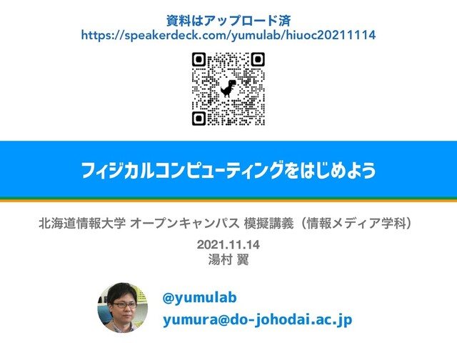 2021年11月14日に開催された北海道情報大学オープンキャンパス模擬講義「フィジカルコンピューティングをはじめよう」の資料