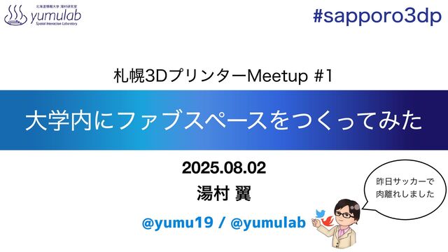 େֶʹϑΝϒεϖʔεΛͭͬͯ͘Έͨ ࡳຈ%ϓϦϯλʔ.FFUVQ #TBQQPSPEQ 2025.08.02 ౬ଜ ཌྷ @yumu19 / @yumulab ࡢαοΧʔͰ