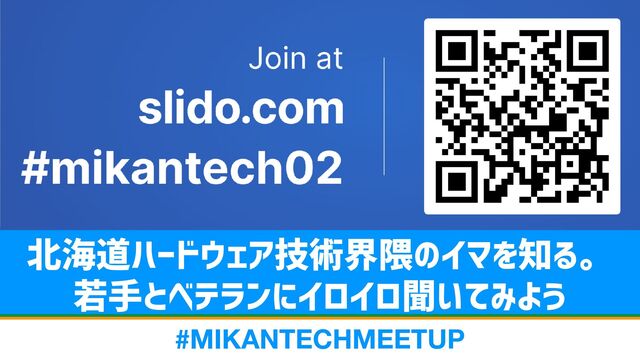 2023年9月17日(日)にBYYARDで開催されたMIKAN TECH MEETUP 2023のセッション2「北海道ハードウェア技術界隈のイマを知る。 若手とベテランにイロイロ聞いてみよう #MIKANTECHMEETUP」の発表資料