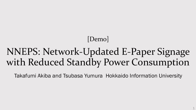• Total power consumption of e-paper control computer and power control computer • Starts only when the screen is refreshed Existing method (network-updated EPS) • E-paper control computer is always running • Receive content and update images Measure the power consumption of the existing method (network update EPS) and the proposed method (NNEPS) Updated content ON ON ON E-Paper Control PC E-Paper Display Updated content OFF ON OFF E-Paper Control PC E-Paper Display