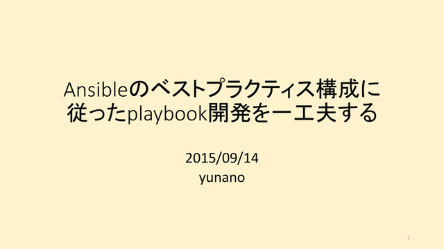 main.yml # <-- tasks file can include smaller files if warranted handlers/ # main.yml # <-- handlers file templates/ # <-- files for use with the template resource ntp.conf.j2 # <------- templates end in .j2 files/ # bar.txt # <-- files for use with the copy resource foo.sh # <-- script files for use with the script resource vars/ # main.yml # <-- variables associated with this role defaults/ # main.yml # <-- default lower priority variables for this role meta/ # main.yml # <-- role dependencies webtier/ # same kind of structure as “common” was above, done for the webtier role 4