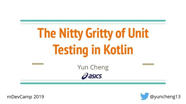 lateinit • Kotlin classes are final by default ◦ open keyword, interfaces, libraries • Use helper functions for Mockito Matchers and ArgumentCaptors ◦ MockitoKotlinHelpers.kt • Use backticks for `when` • Use the default Android Studio directory structure • Use backticks around test names if you want to include spaces • Group tests together using @nested (requires JUnit 5)