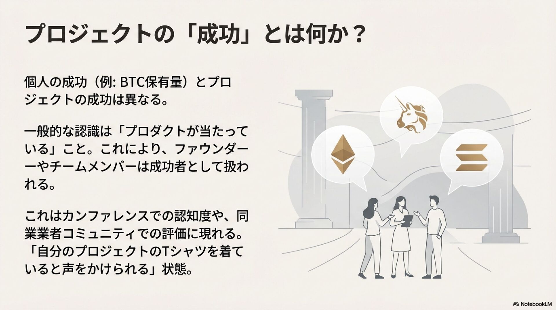 クリプトプロジェクトにおける成功の定義は何か、改めて考えてみます。