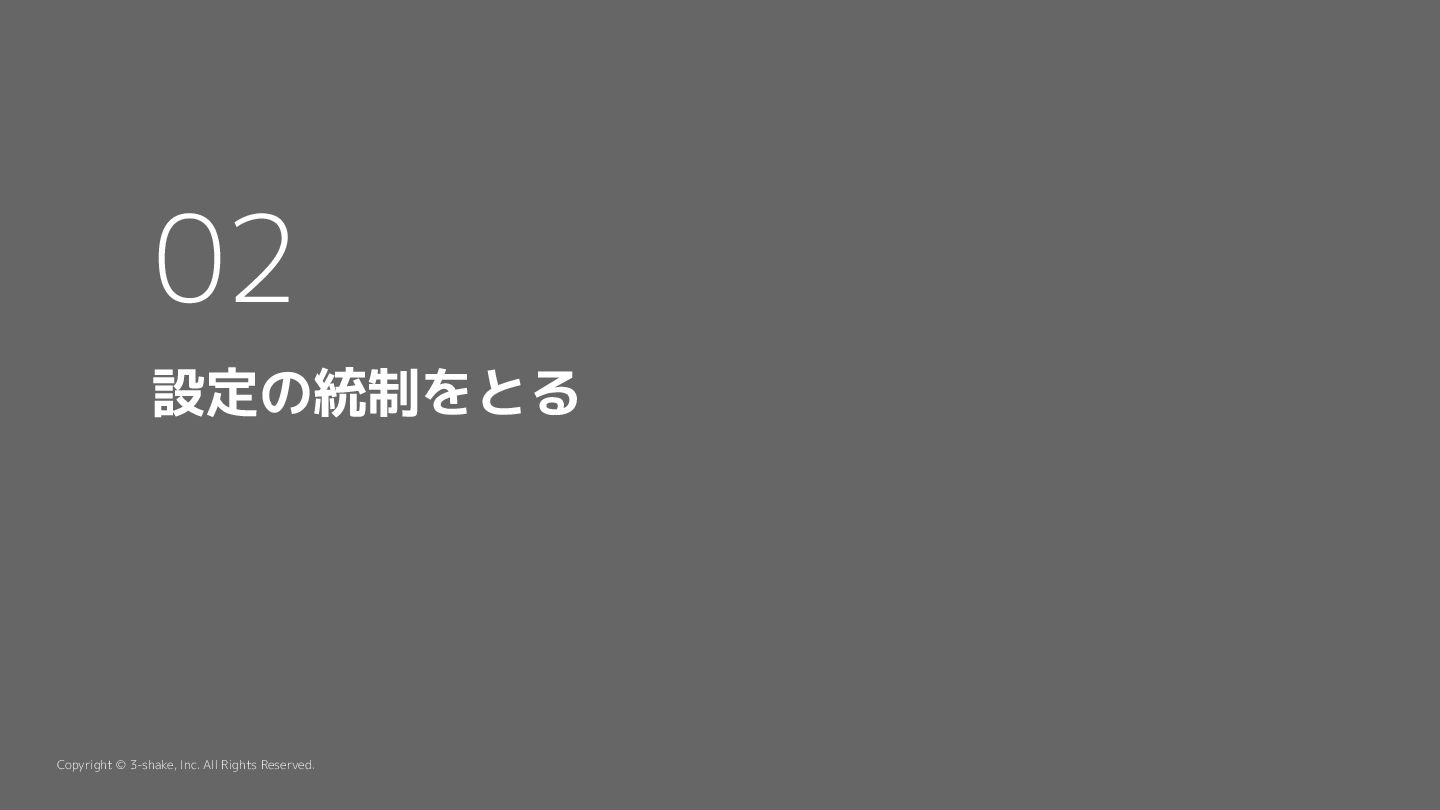 設定の統制をとる 02 Copyright © 3-shake, Inc. All Rights Reserved.