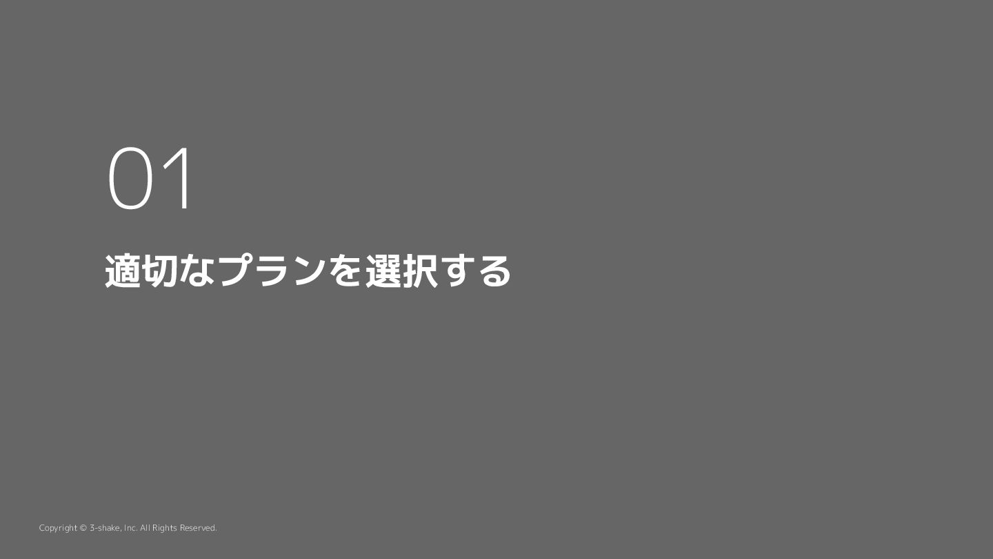 適切なプランを選択する 01 Copyright © 3-shake, Inc. All Rights Reserved.