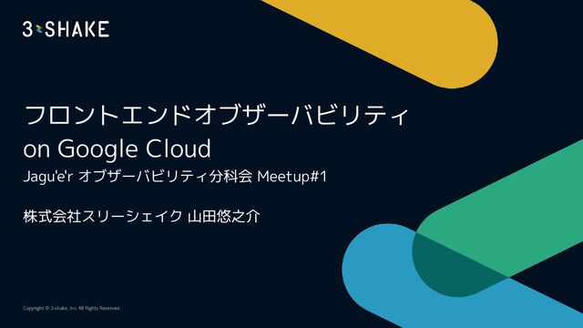 フロントエンドオブザーバビリティ on Google Cloud Jagu'e'r オブザーバビリティ分科会 Meetup#1 株式会社スリーシェイク 山田悠之介 Copyright