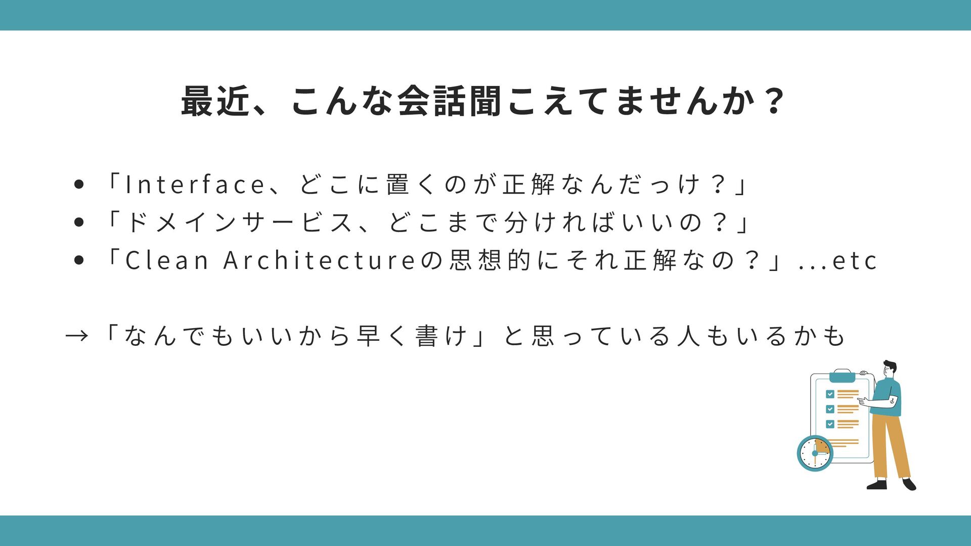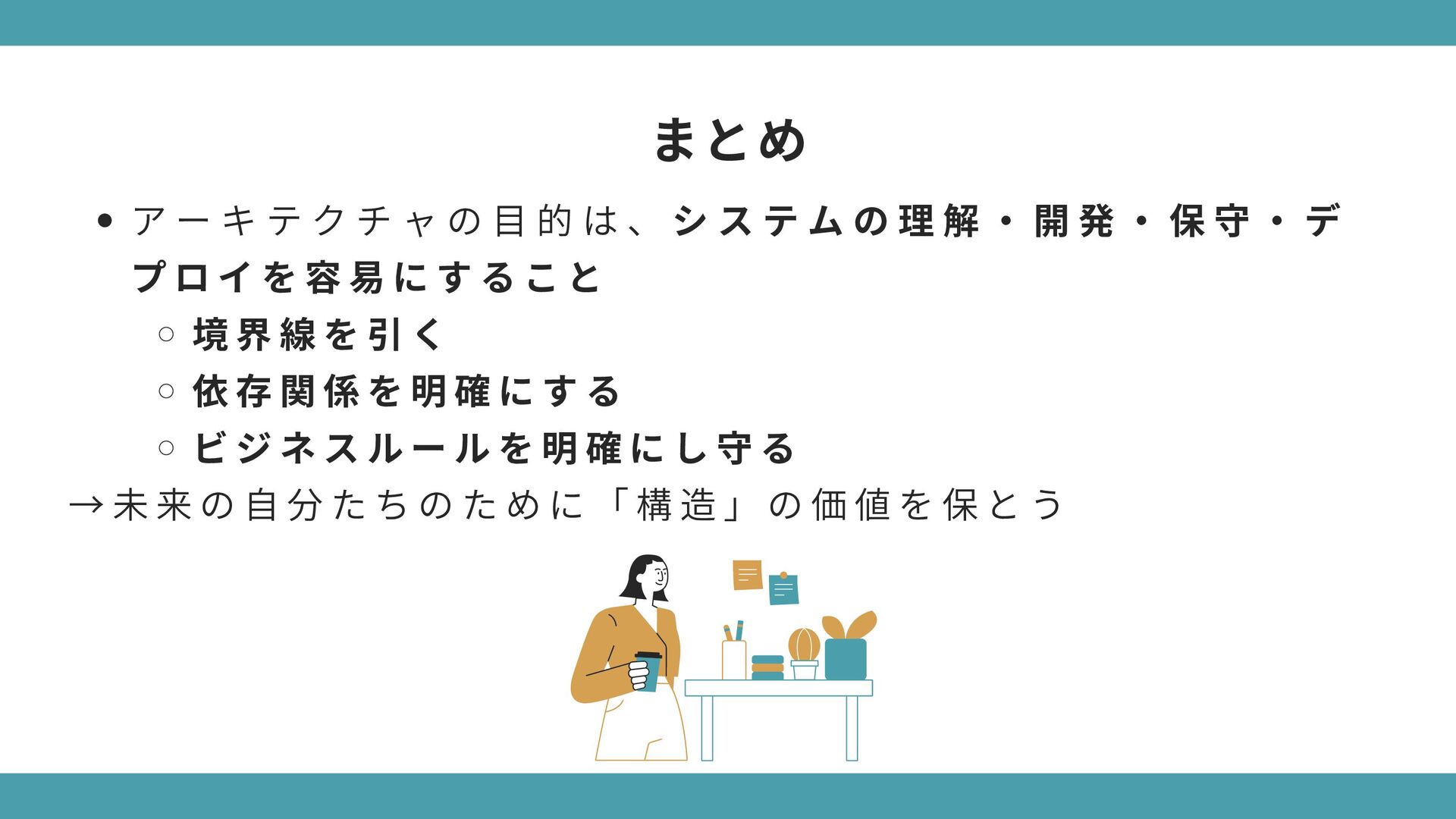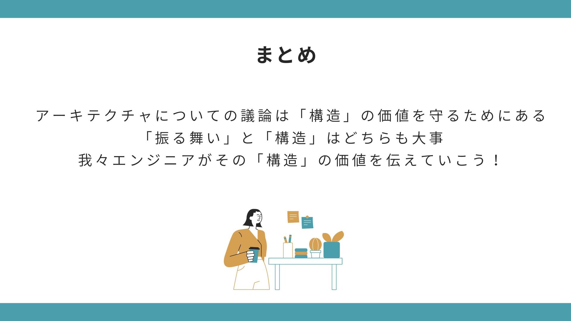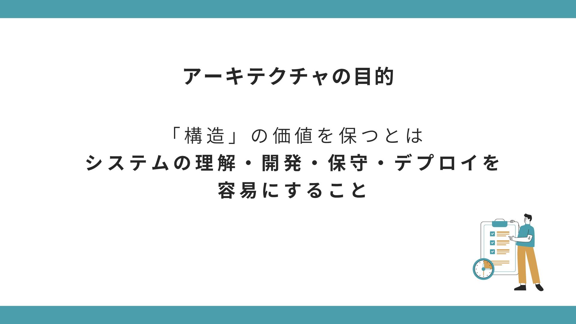 構 造 が 酷 く 変 更 で き な い ソ フ ト ウ ェ ア 要 件 や 仕 様 の 変 更 に よ っ て 役 に 立 た な く な る 動 作 し な い け ど 、 構 造 が 完 璧 で 変 更 は 容 易 な ソ フ ト ウ ェ ア 要 件 や 仕 様 が 変 更 さ れ て も 動 か し 続 け る こ と が で き る → 「 構 造 」 の 価 値 が 「 振 る 舞 い 」 に 劣 る わ け で は な い ( ※ ソ フ ト ウ ェ ア は 変 更 さ れ る も の ) 極端なケースで考えてみよう