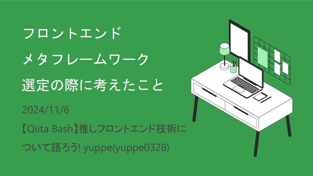 フロントエンド メタフレームワーク 選定の際に考えたこと 2024/11/6 【Qiita Bash】推しフロントエンド技術に ついて語ろう! yuppe(yuppe0328)