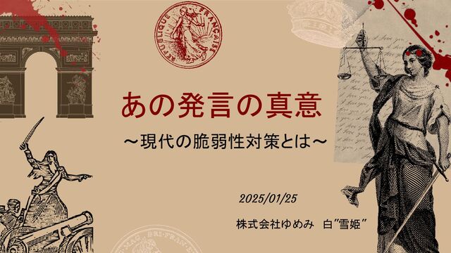 あの発言の真意 ~現代の脆弱性対策とは~ 2025/01/25 株式会社ゆめみ 白 " 雪姫 "