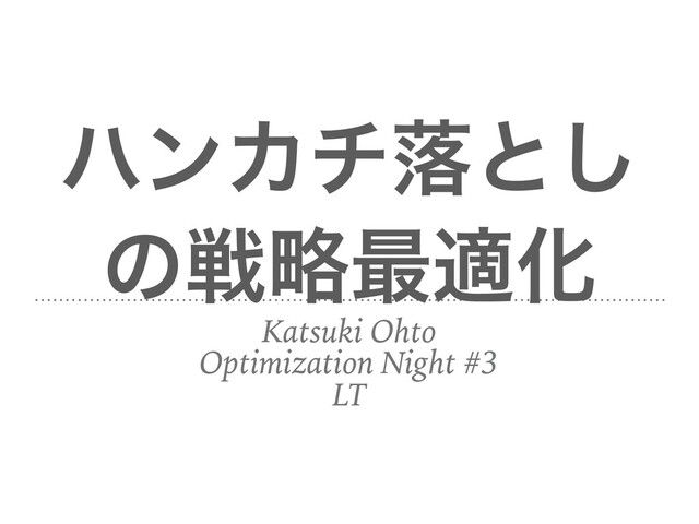 ϋϯΧνམͱ͠ ͷઓུ࠷దԽ Katsuki Ohto Optimization Night #3 LT