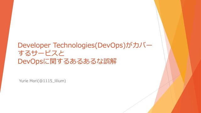 ・MS MVP for Developer Technologies(DevOps)がカバーするサービス ・DevOpsとは何か ・DevOpsとソフトウェア開発ライフサイクル ・DevOpsに関する3つのあるあるな誤解