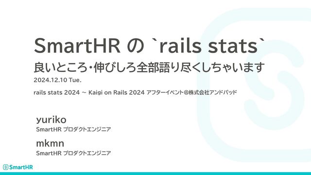 SmartHR の `rails stats` 良いところ・伸びしろ全部語り尽くしちゃいます 2024.12.10 Tue. rails stats 2024