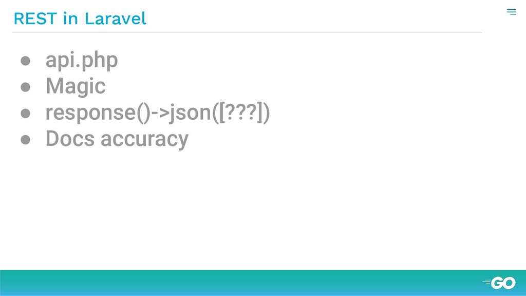 REST in Laravel • api.php • Magic • response()->json([???]) •