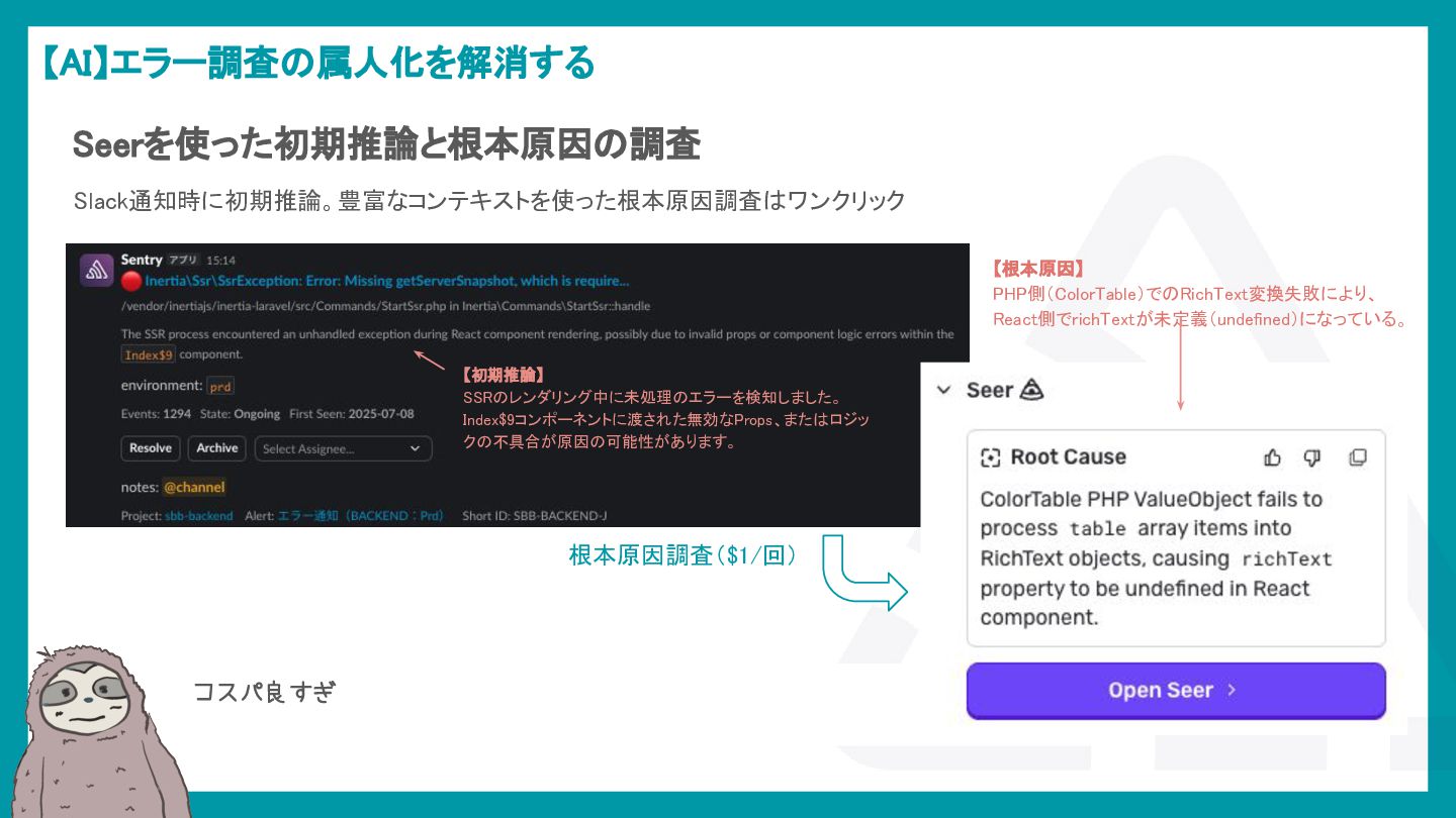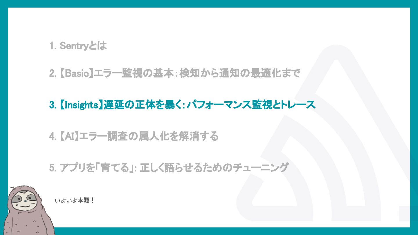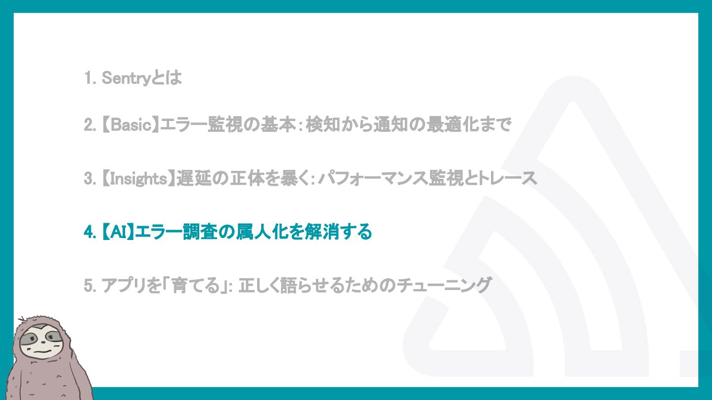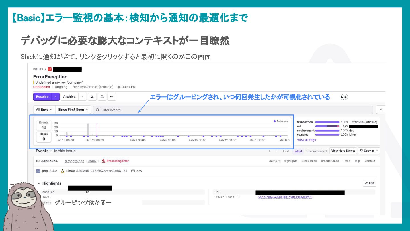 LaravelアプリケーションでSentryを活用し、エラー検知から通知最適化、パフォーマンス監視、AIによる調査効率化までを解説。開発現場のボトルネックを可視化し改善する方法を紹介。