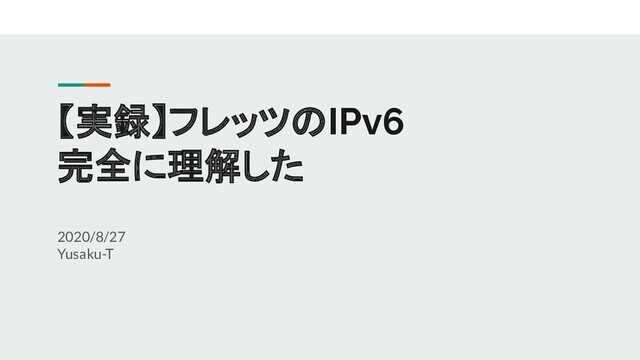 【実録】フレッツのIPv6 完全に理解した 2020/8/27 Yusaku-T