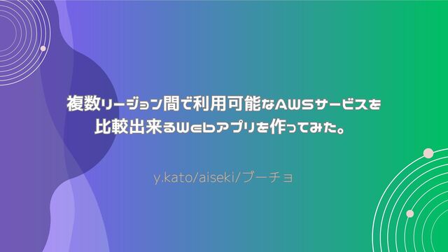 複数リージョン間で利用可能なAWSサービスを 比較出来るWebアプリを作ってみた。 複数リージョン間で利用可能なAWSサービスを 比較出来るWebアプリを作ってみた。 y.kato/aiseki/ブーチョ y.kato/aiseki/ブーチョ