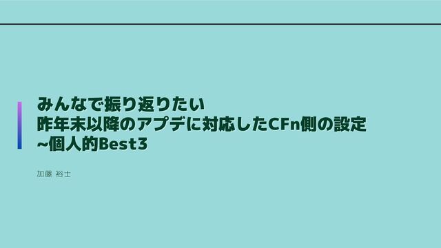 みんなで振り返りたい昨年末以降のアプデに対応したCFn側の設定~個人的Best3