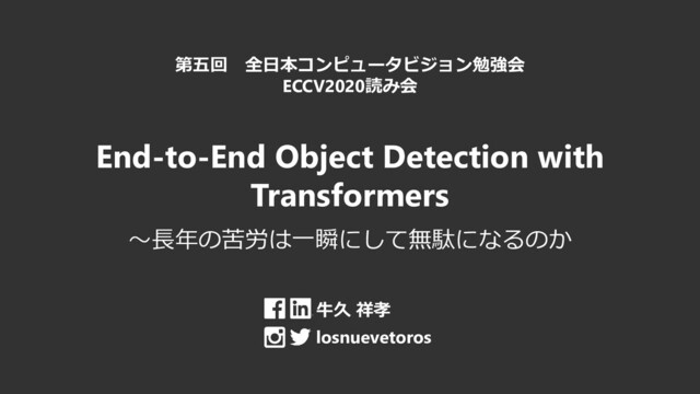 第五回 全日本コンピュータビジョン勉強会 ECCV2020読み会で「End-to-End Object Detection with Transformers」を読みました。