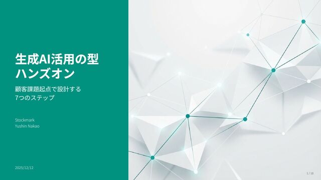 ストックマークの社内勉強会で用いたスライドです。テーマは「とりあえずAIで何かやるを卒業し、誰のどんな課題をどう解くかを言語化・実装する」です。スライドのレイアウトと画像はGemini 3 ProとNano Bananaで生成しました。 https://note.com/yushin_n/n/ncbc0f5ca68c6