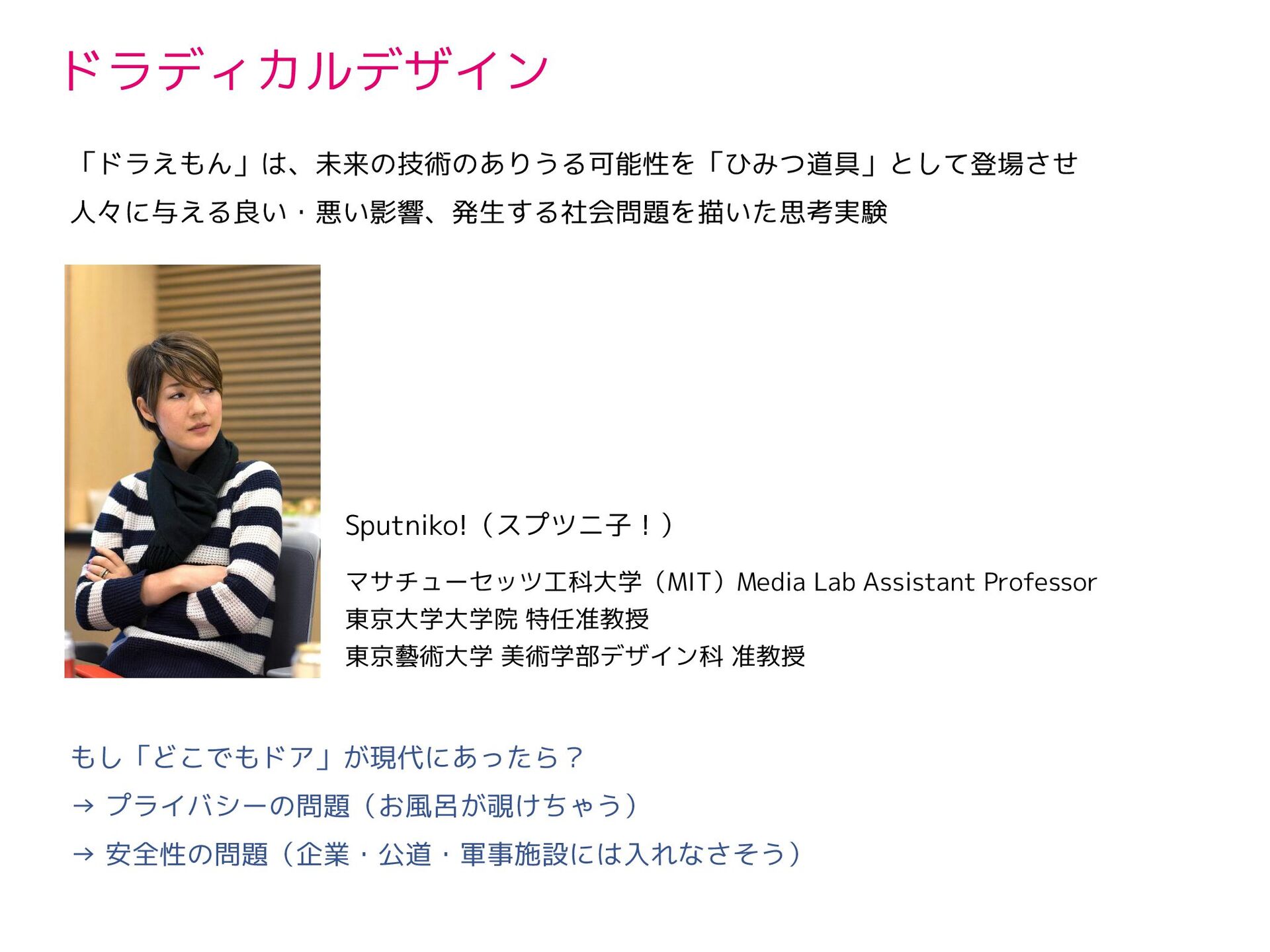 ドラディカルデザイン Sputniko!(スプツニ子!) マサチューセッツ工科大学(MIT)Media Lab Assistant Professor 東京大学大学院 特任准教授 東京藝術大学 美術学部デザイン科