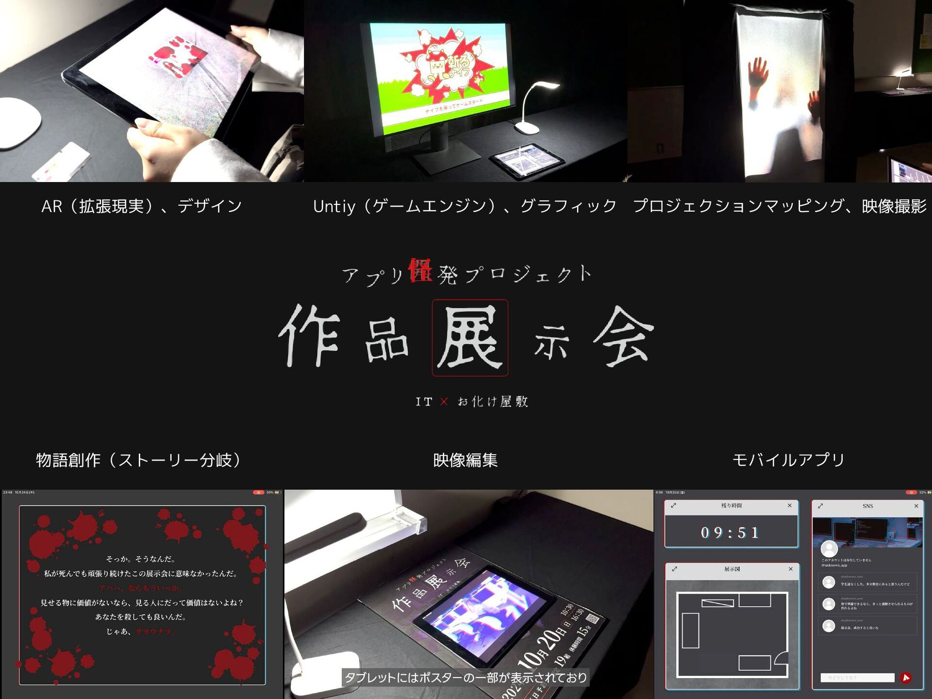AR(拡張現実)、デザイン Untiy(ゲームエンジン)、グラフィック プロジェクションマッピング、映像撮影 映像編集 物語創作(ストーリー分岐) モバイルアプリ