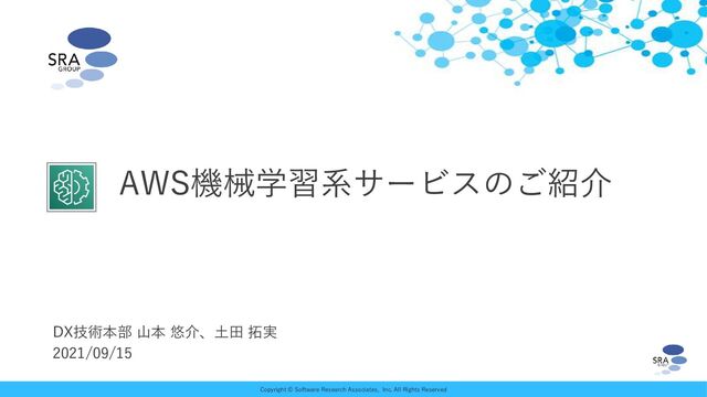 Copyright © Software Research Associates, Inc. All Rights Reserved AWS機械学習系サービスのご紹介