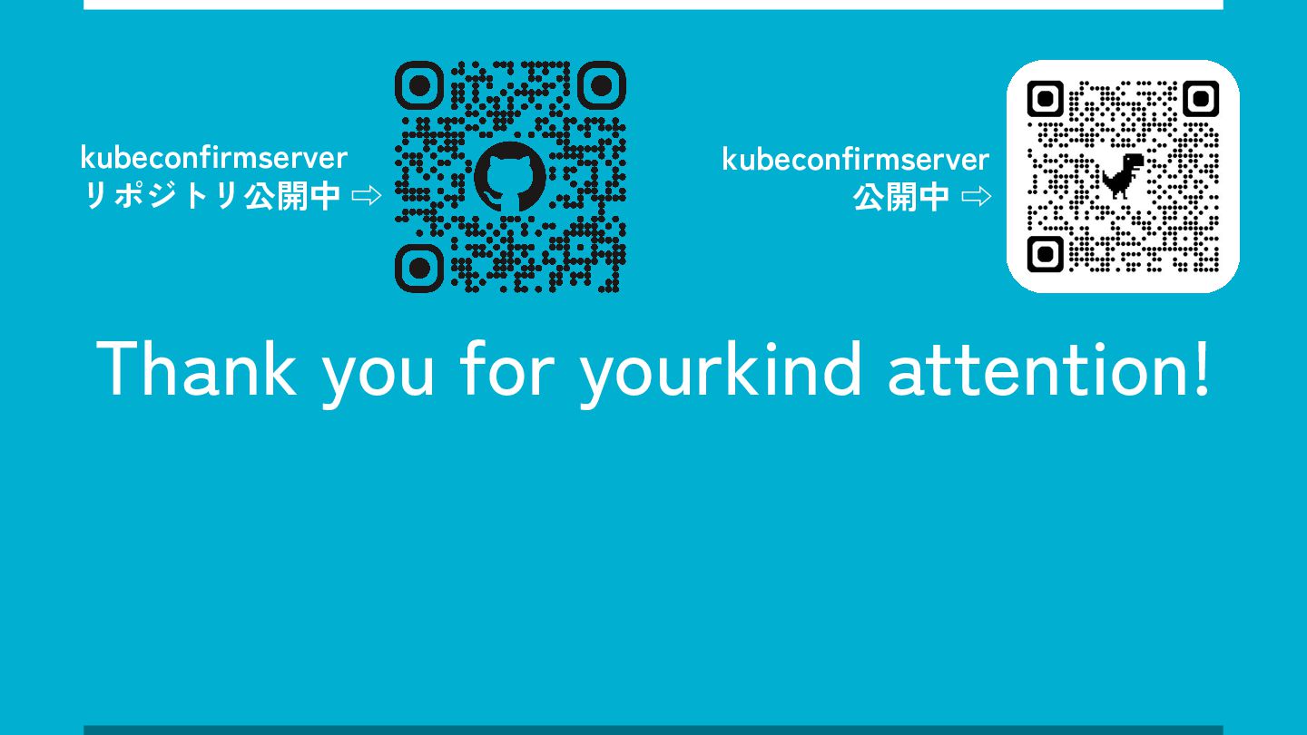 Thank you for yourkind attention! kubeconfirmserver リポジトリ公開中 ⇨ kubeconfirmserver 公開中