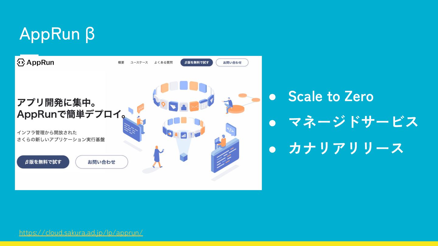 AppRun β https://cloud.sakura.ad.jp/lp/apprun/ • Scale to Zero • マネージドサービス •