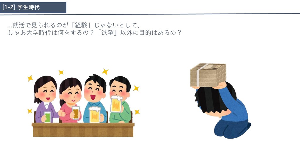 [1-2] 学生時代 ...就活で見られるのが「経験」じゃないとして、 じゃあ大学時代は何をするの?「欲望」以外に目的はあるの?