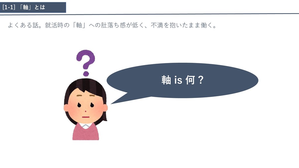 [1-1] 「軸」とは よくある話。就活時の「軸」への肚落ち感が低く、不満を抱いたまま働く。 軸 is 何 ?