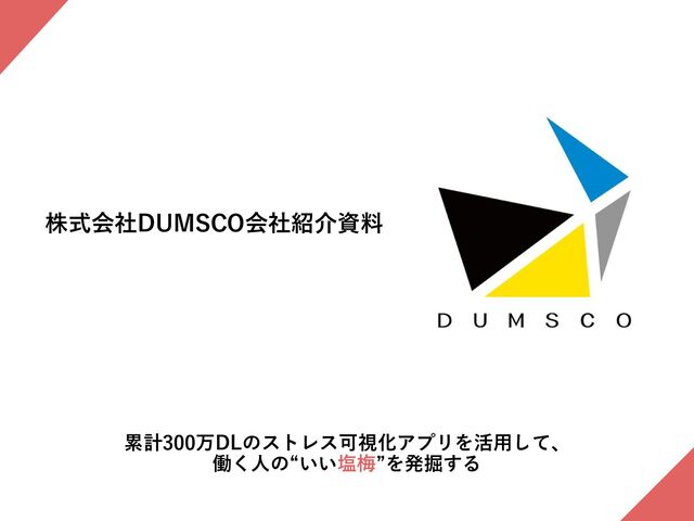 累計300万DLのストレス可視化アプリを活用して、 働く人の“いい塩梅”を発掘する 株式会社DUMSCO会社紹介資料