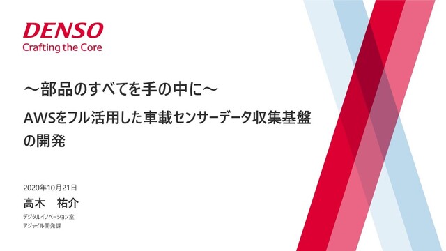 S I oT C ore 車載器 A m azon Si m pl e Storage Servi ce 分析結果 報告書 RRiデータ 変換 不正ロ グイ ン 監視 コ スト 監視 不正設定 監視 A m azon A thena データ 取得 AWS Cloud A m azon C l oudW atch Events A W S Lam bda 脅威監視 A W S C l oudTrai l A m azon G uardD uty A W S Lam bda A W S C onf i g A W S Lam bda A W S C os t Expl orer A W S Lam bda A W S Lam bda エラ ー 監視 生体信号 分析 データ 取得 データ 変換 ア ッ プ ロ ード セン サ ダミ ーデータ 生成 アッ プ ロ ード AWS Cloud システ ム運用担当者 (デン ソ ー社内) データ 取得 データ 変換 アッ プ ロ ード セン サ データ 取得 データ 変換 アッ プ ロ ード セン サ ク ラ ウド 死活監視用 車載器 ap- northeast-1a 運用管理用パブ リ ッ ク サブ ネッ ト 運用管理用VPC Availability Zone AWS System s Manager Am azon Elastic Com pute Cloud 172.31.0.0/16 Availability Zone 開発環境 本番環境 開発用環境も 本番と 同等 A m azon C l oudW atch Events A m azon C l oudW atch Logs A m azon Si m pl e N oti f i cati on Servi ce A m azon C l oudW atch Events Title / Month XX, 2020 (『挿入』→『ヘッダーとフッター』から入力してください) 22 あるプロジェクトの例:オペレーショナルモデル(物理) システム物理構成図 SRE課員もチームに参加し、 初期から運用・監視も考慮