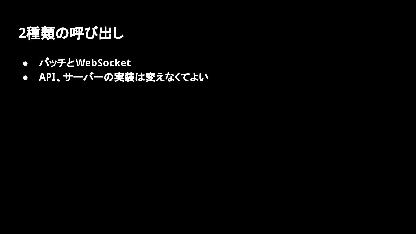 2種類の呼び出し • バッチとWebSocket • API、サーバーの実装は変えなくてよい