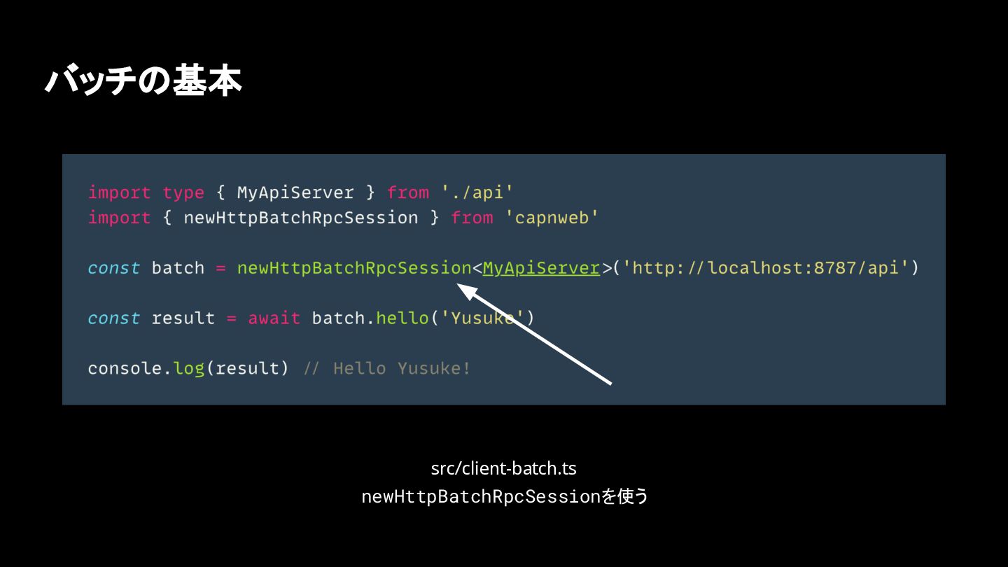 バッチの基本 src/client-batch.ts newHttpBatchRpcSessionを使う