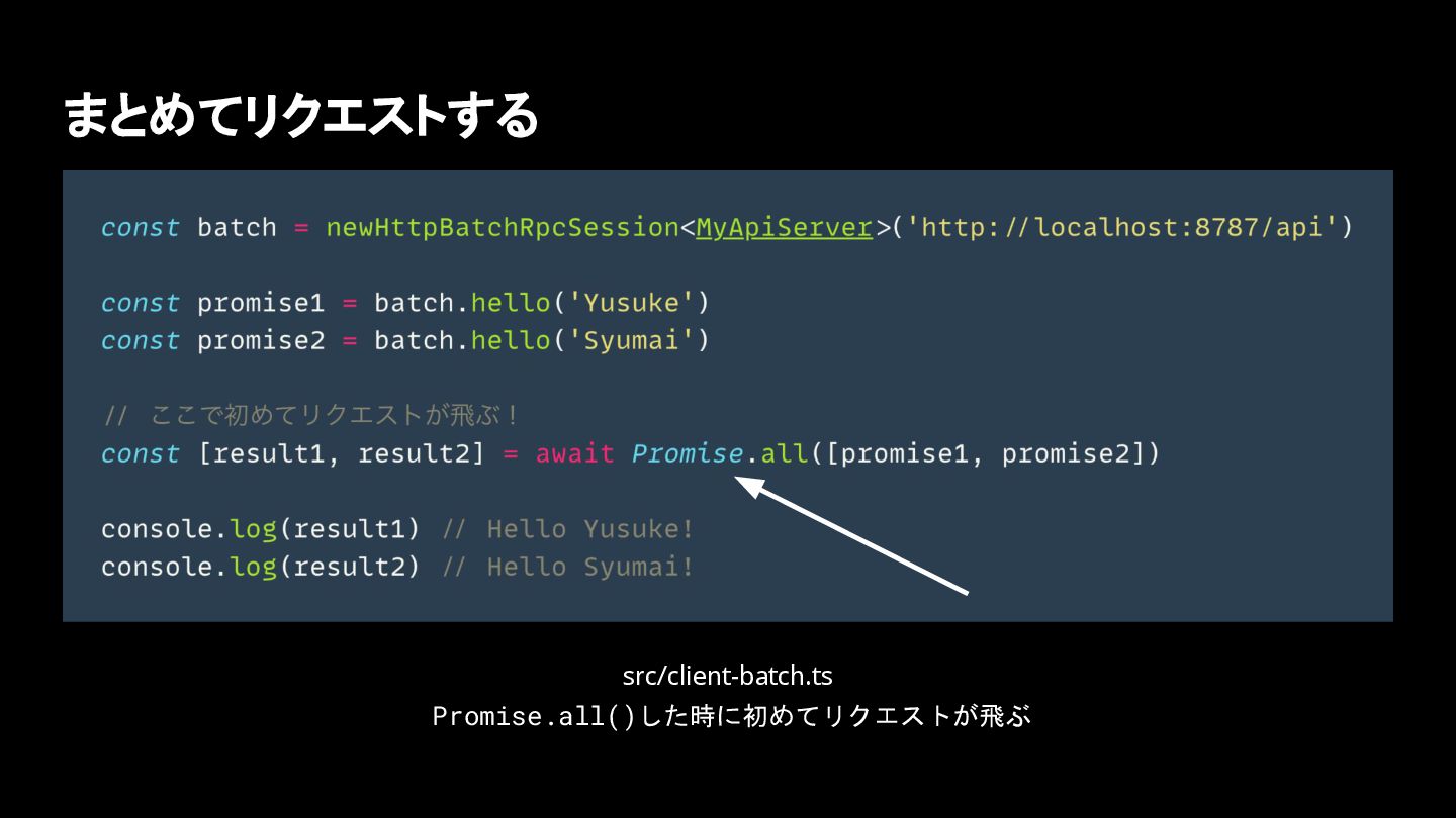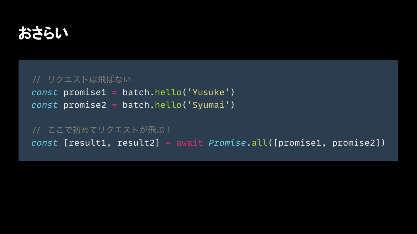 まとめてリクエストする src/client-batch.ts Promise.all()した時に初めてリクエストが飛ぶ