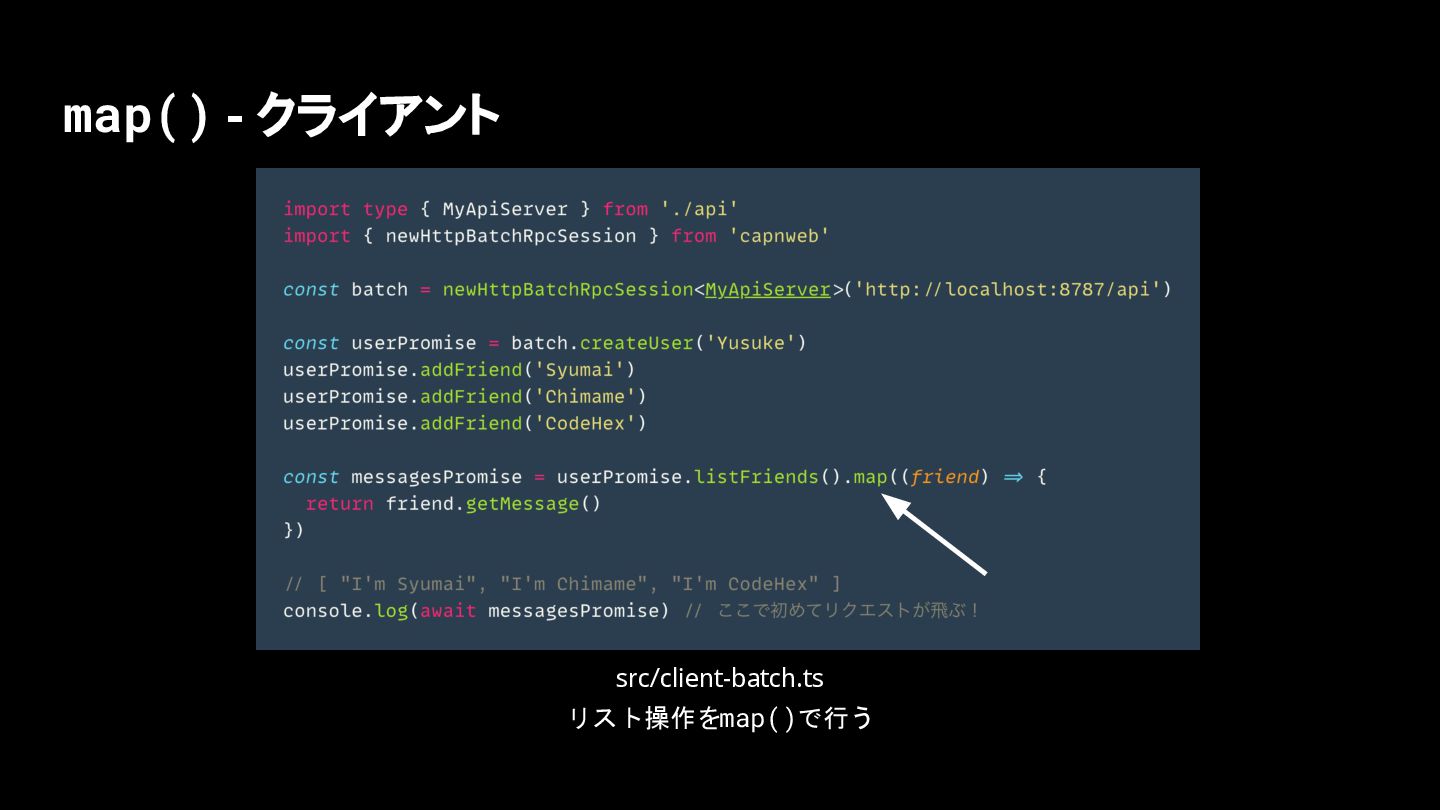 map() - クライアント src/client-batch.ts リスト操作をmap()で行う