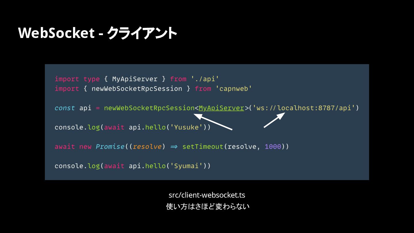 WebSocket - クライアント src/client-websocket.ts 使い方はさほど変わらない